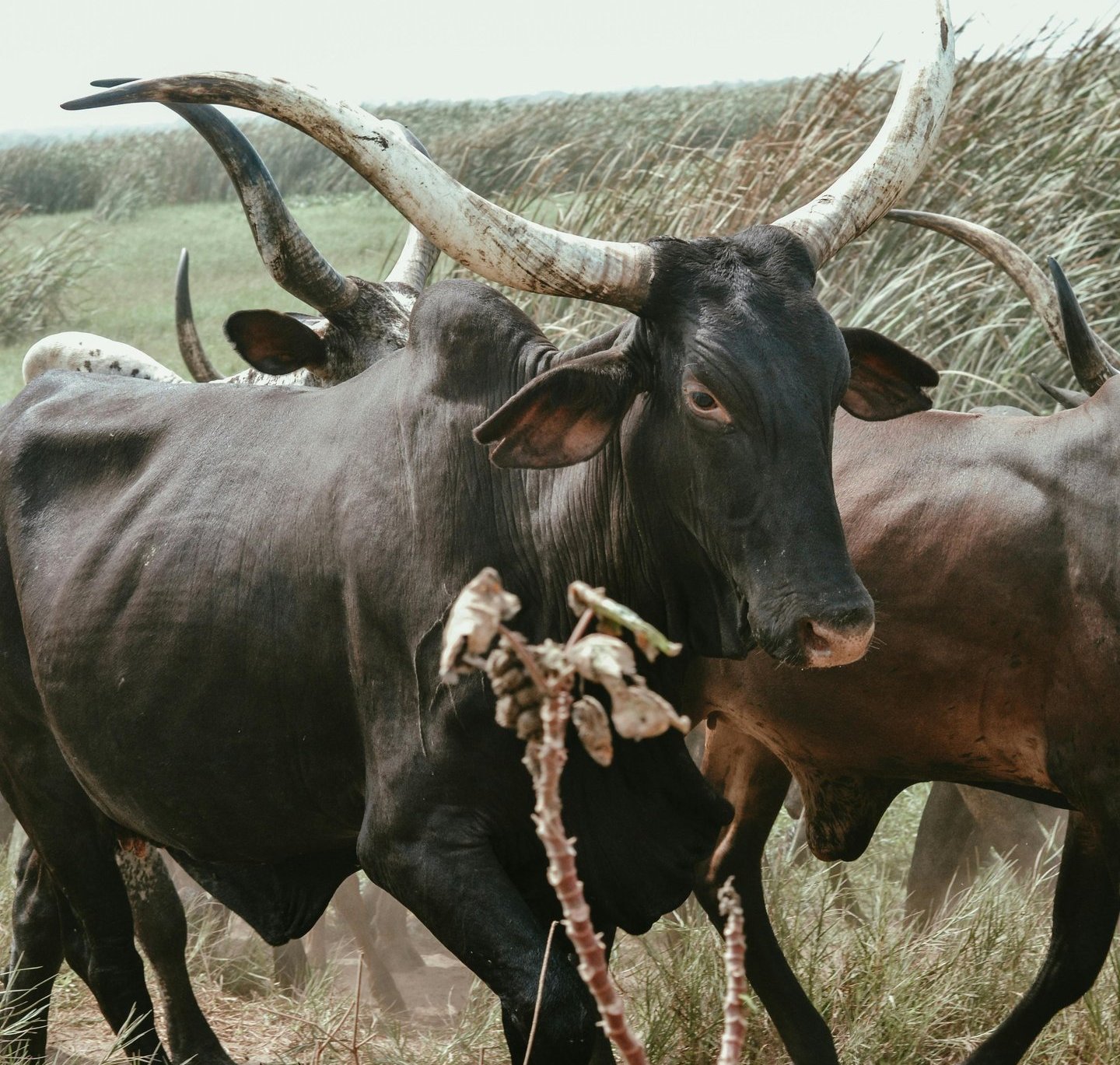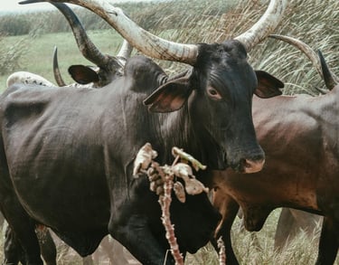 Ankole cattle grazing (Inyambo cows)